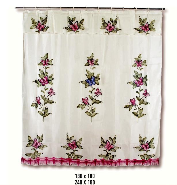 Η κουρτίνα αυτή διατίθεται σε 2,40 πλάτος Χ 1,80 ύψος -Κουρτίνα μπάνιου υφασμάτινη με αδιαβροχοποιημένο ύφασμα -Aδιαβροχη -Ενισχυμένη ραφή στις θηλιές -Εύχρηστη -Πλένεται και σιδερώνεται σε χαμηλή θερμοκρασία -Ειδική ραφή στο στρίφωμα -Η απόχρωση της κουρτίνας όπως εμφανίζεται στην φωτογραφία δύναται να διαφέρει απο το προϊo