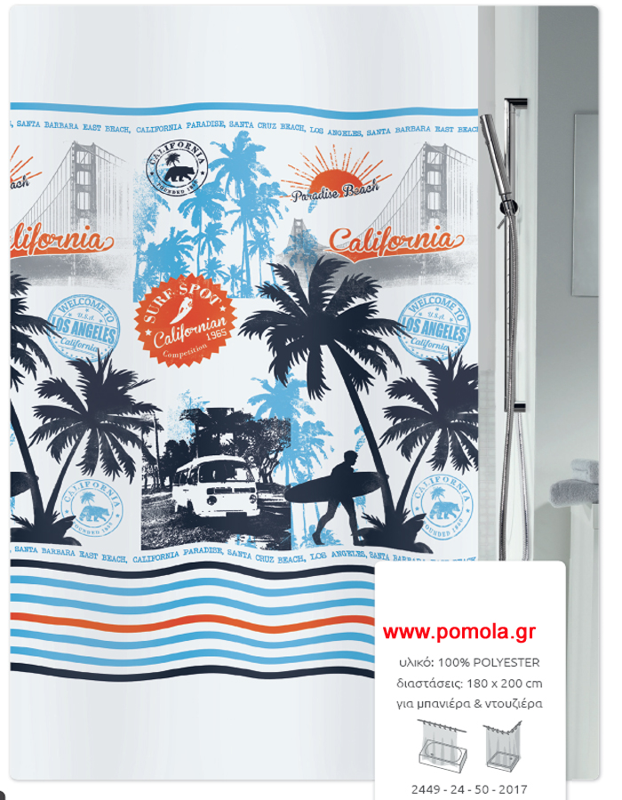 -Κουρτίνα μπάνιου υφασμάτινη με αδιαβροχοποιημένο ύφασμα