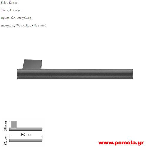 007 Κρικος πετσετας επιτοιχιος σε χρωμα γραφιτη σκουρο